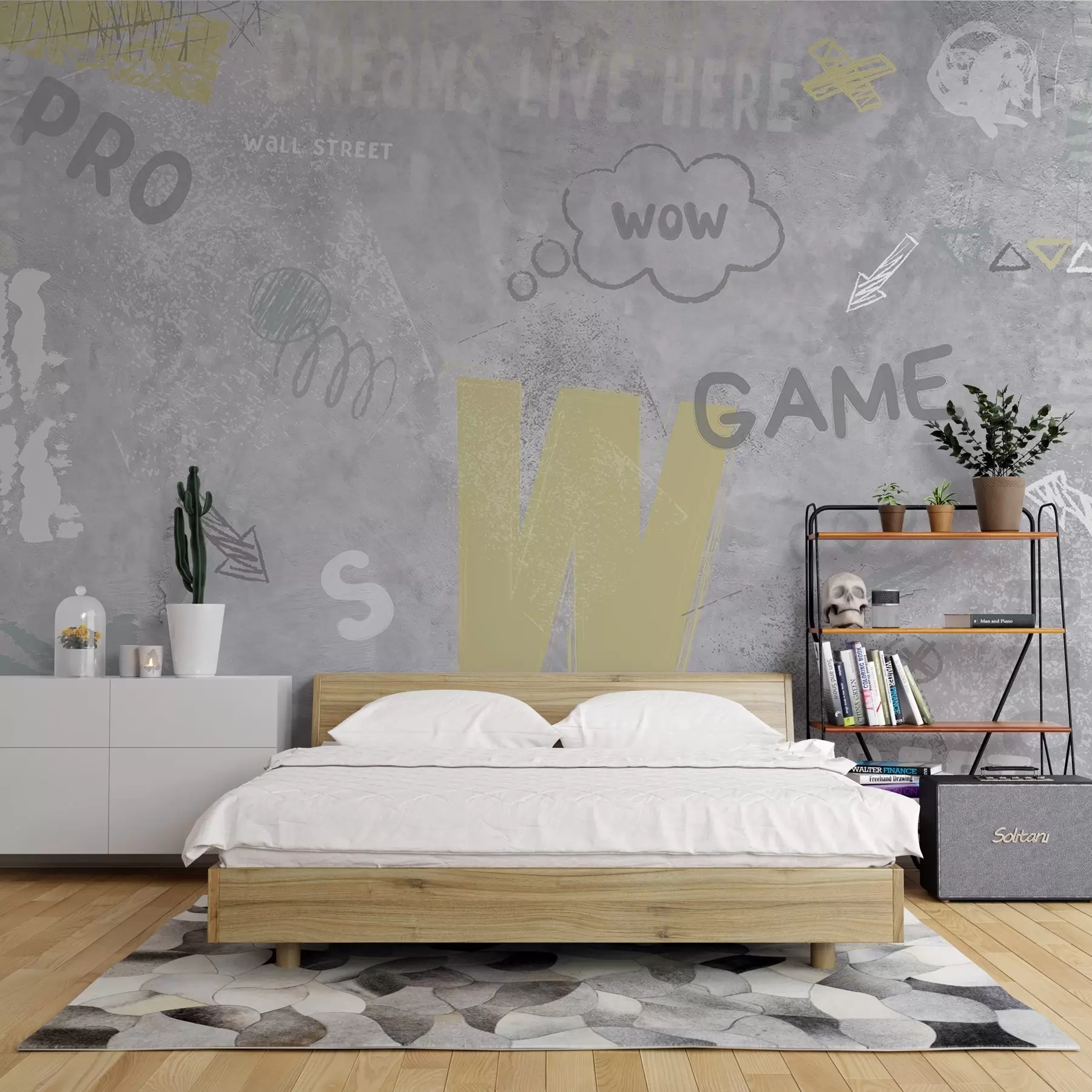 Абстрактні туманні хвилі в сіро-кремових тонах з жовтими лініями