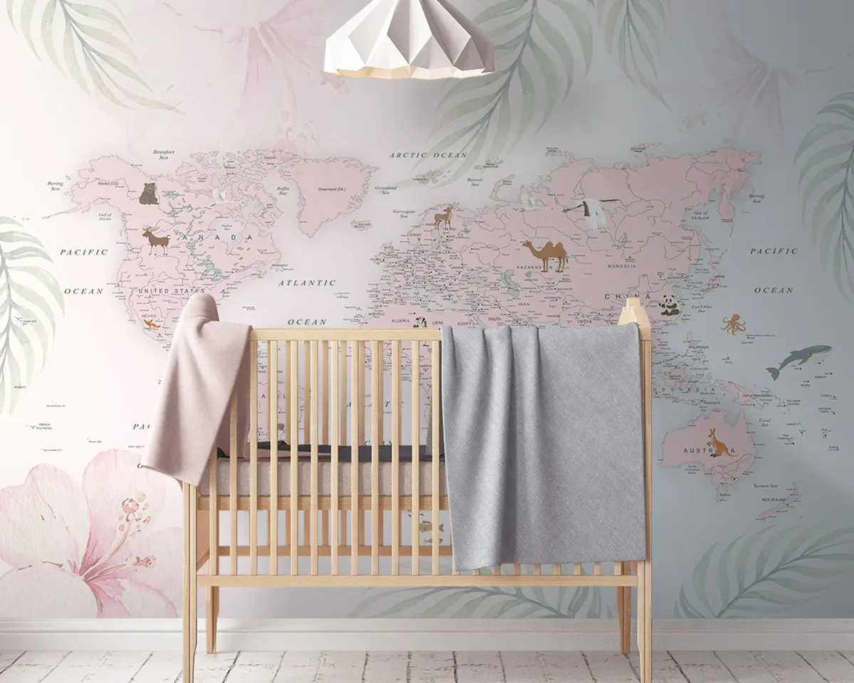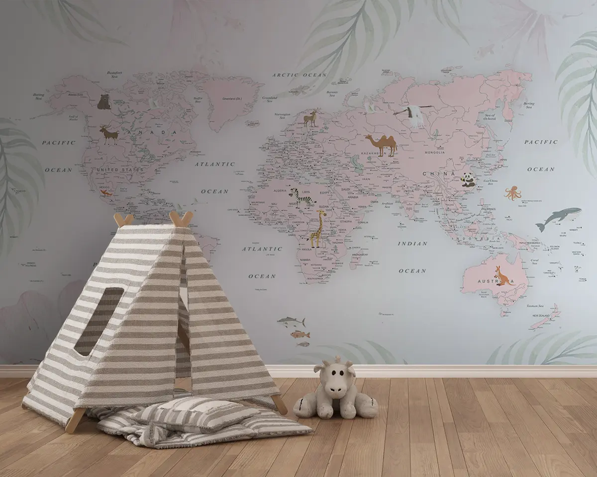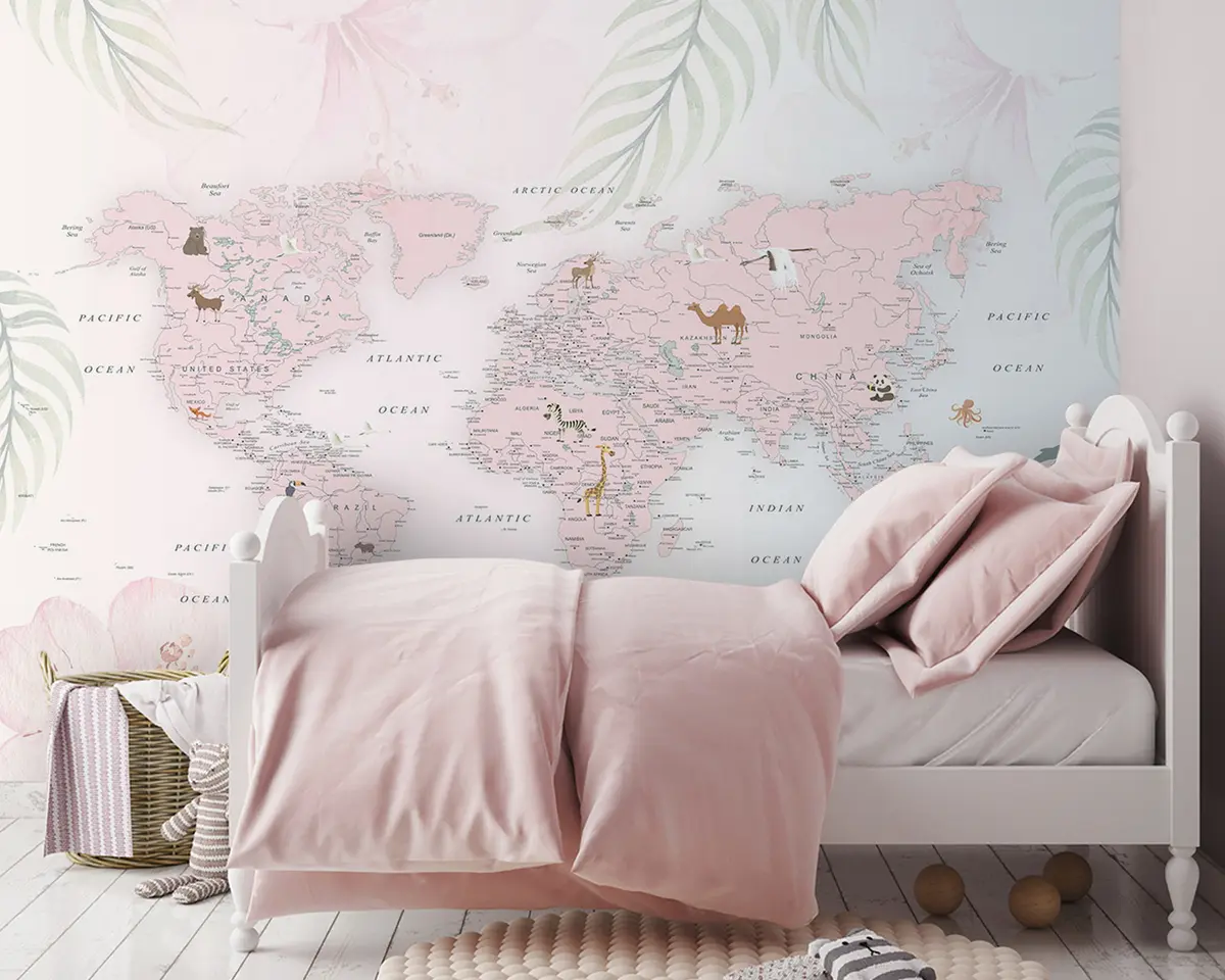 Фотошпалери Карта світу для дівчаток у рожевому стилі u79832
