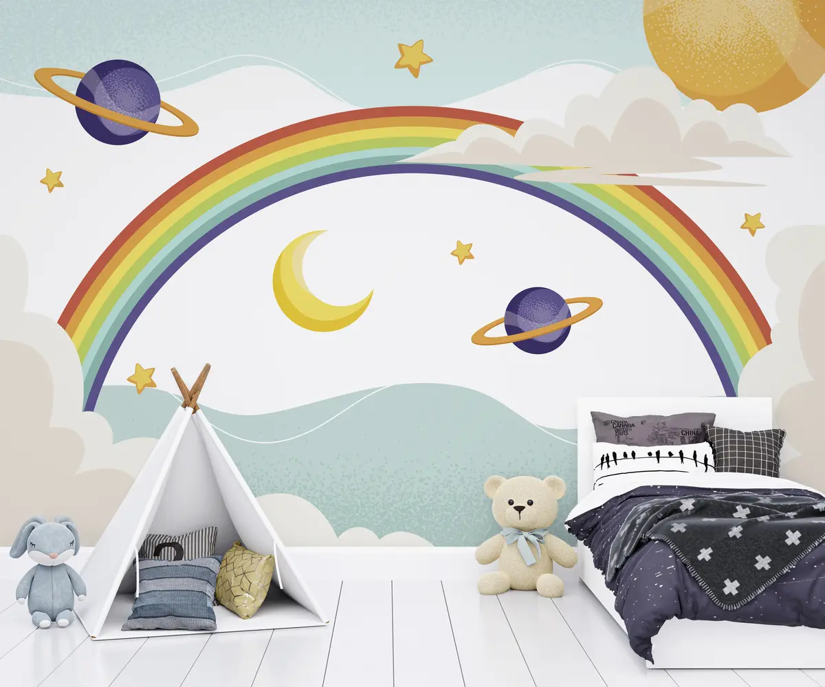 Фотошпалери Веселка у хмарах, планети, зірки u94327