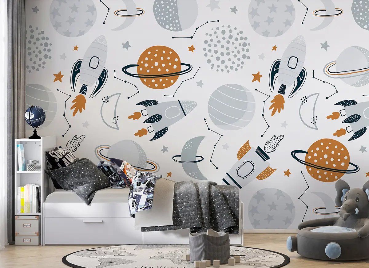 Фотошпалери Космос із планетами, зірками, сузір'ями, ракетами, космічними кораблями u96582