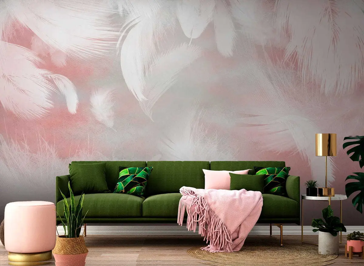 Фотошпалери Біле пір'я на рожевому тлі u41755