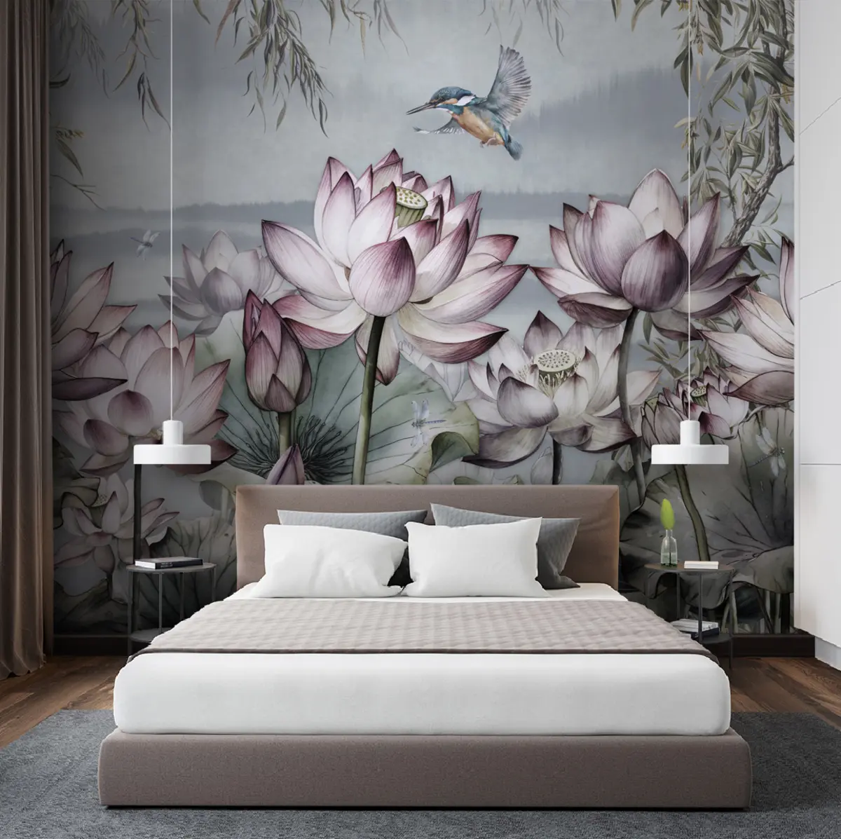 Фотошпалери Квітка лотоса із зимородком u95397