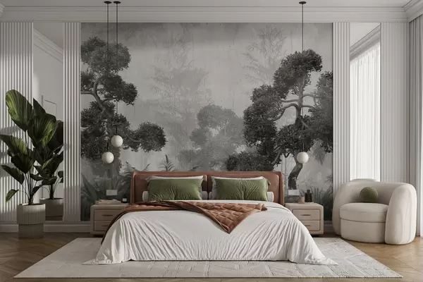 Шпалери Тропічні дерева і листя в туманний ліс u95901