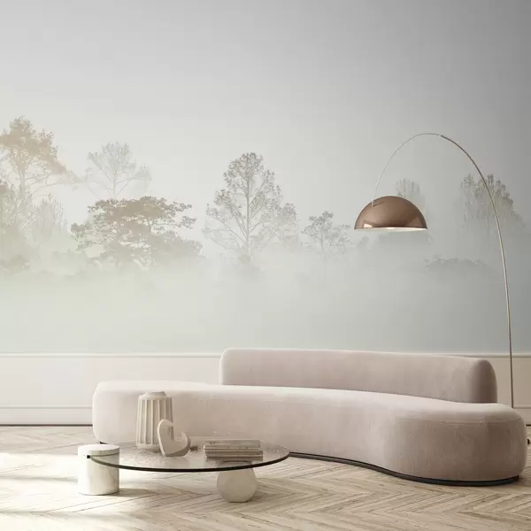 Фотошпалери Силует гаю дерев у густому білому ранковому тумані. u97405