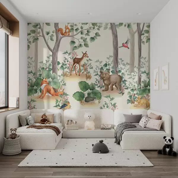 Дерев'яні панелі та ніжний ліс у рожевих тонах