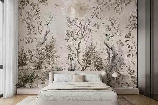 Фотошпалери Садок з тендітними птахами павлінами u94850