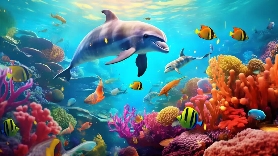 Морське життя, риба, кит, восьминіг, медуза, корали, морське життя, темно-синій колір