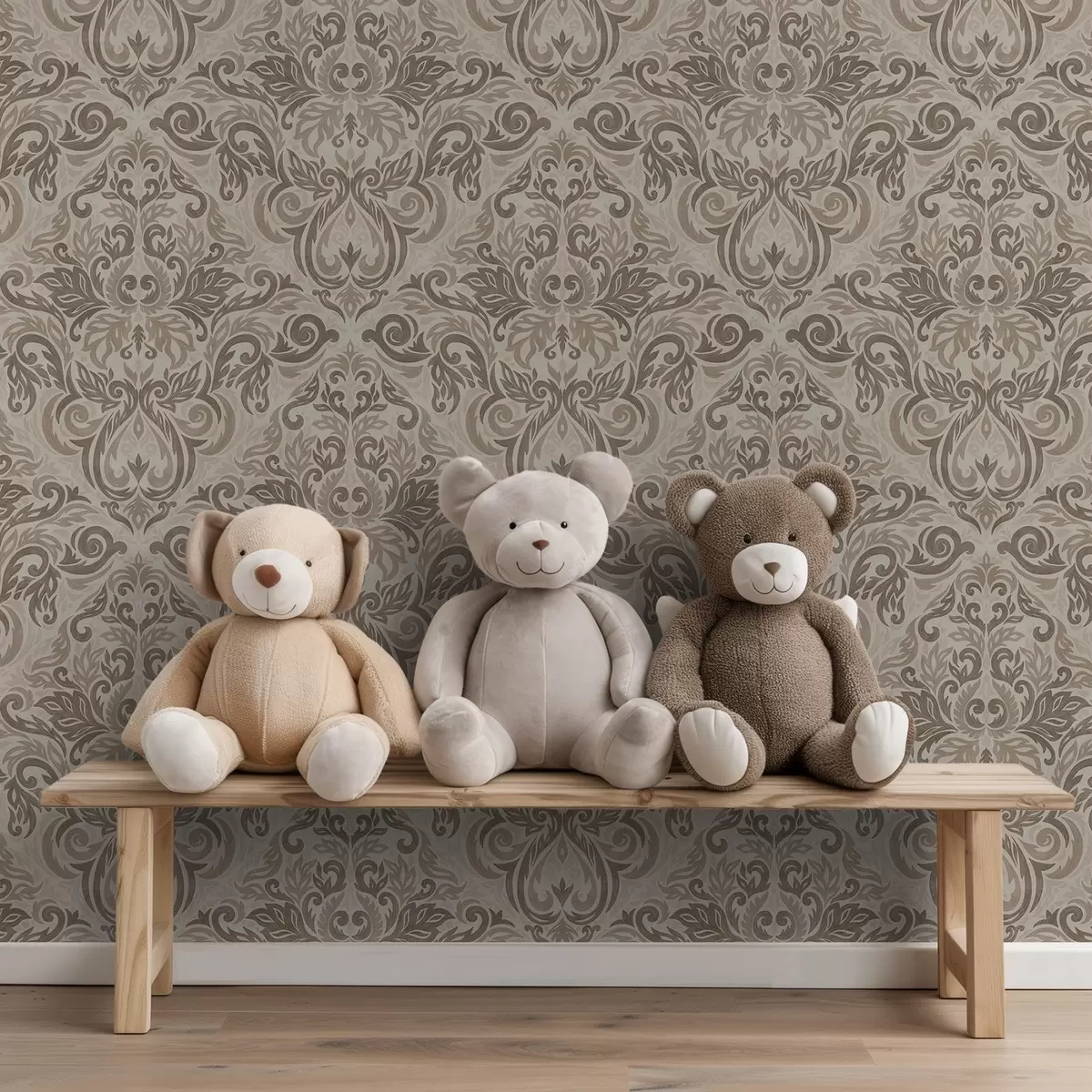 Шпалери Дамаск у теплих сіро-коричневих тонах на світлому тлі Nr. a00826v3
