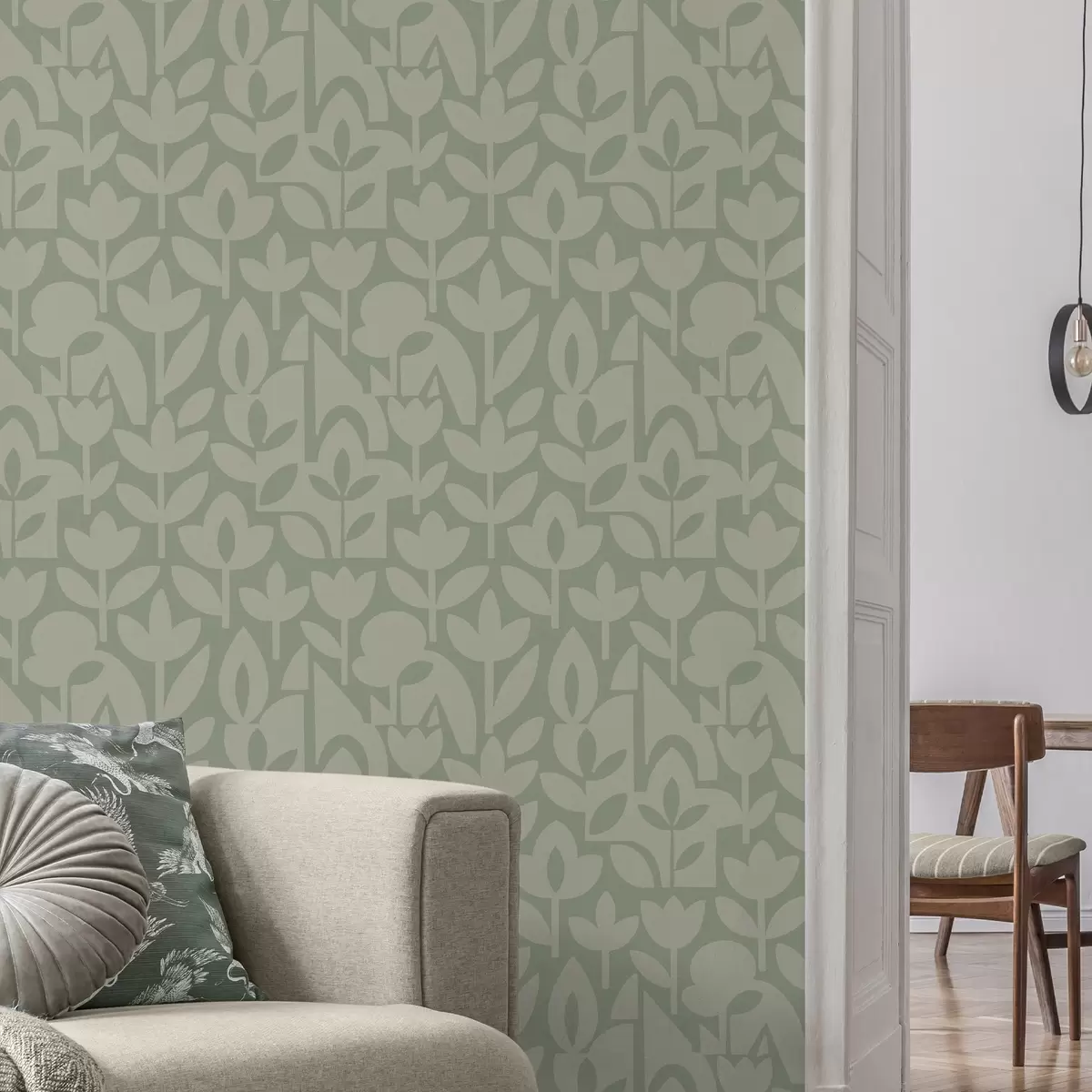 Шпалери Геометричні квіткові силуети в ніжних відтінках шавлії Nr. a00875v1