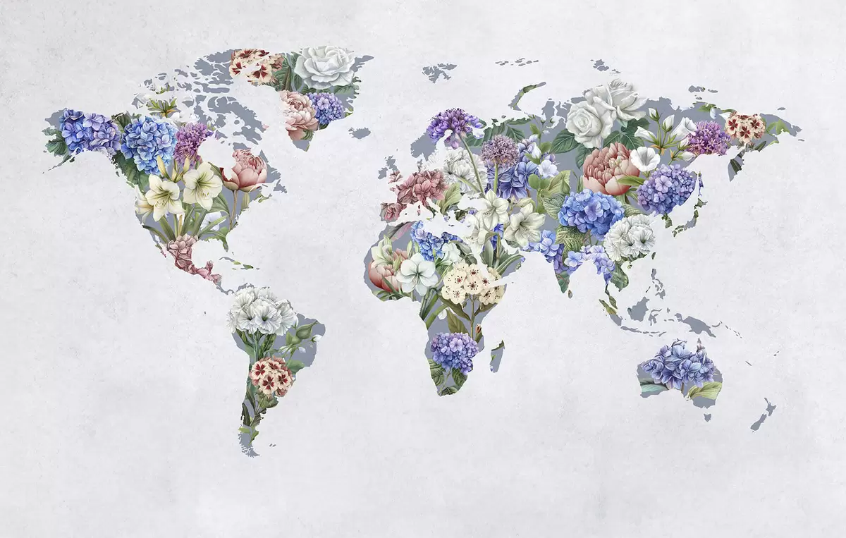 Фотошпалери Барвиста карта світу, створена з різноманітних яскравих квітів c00006
