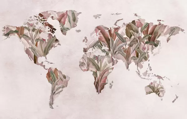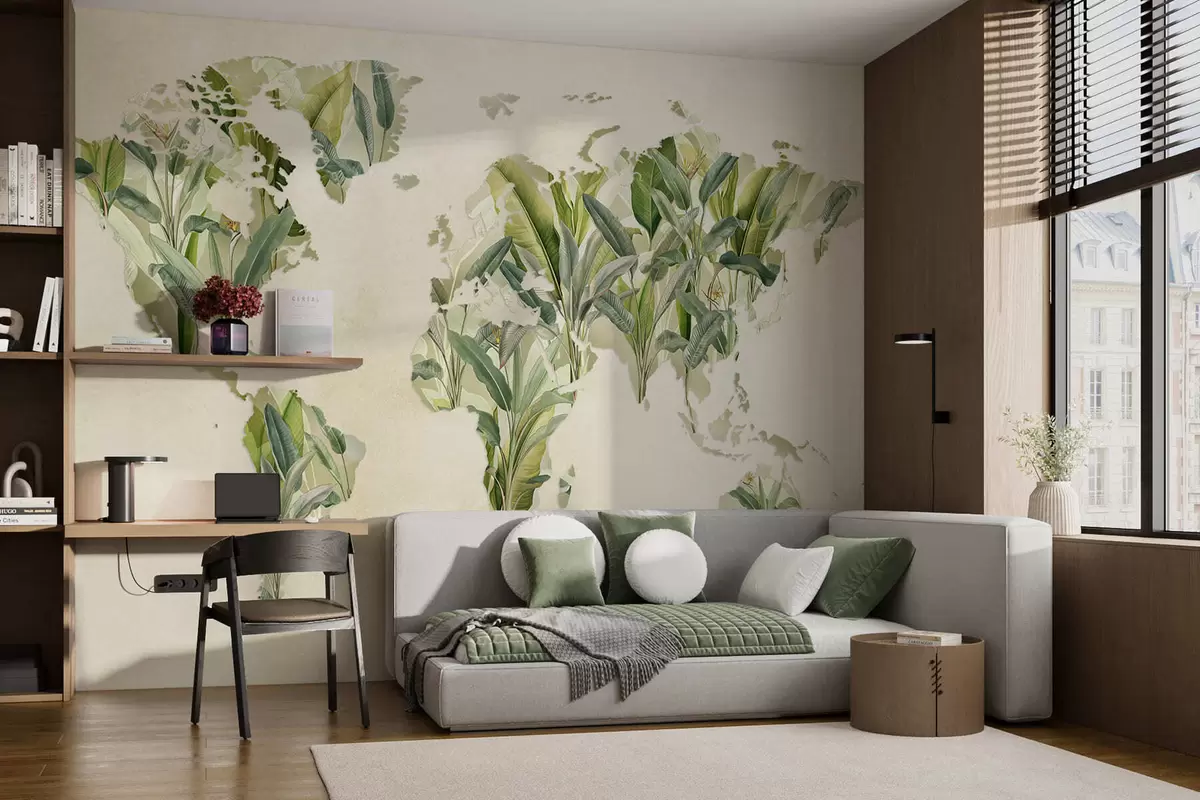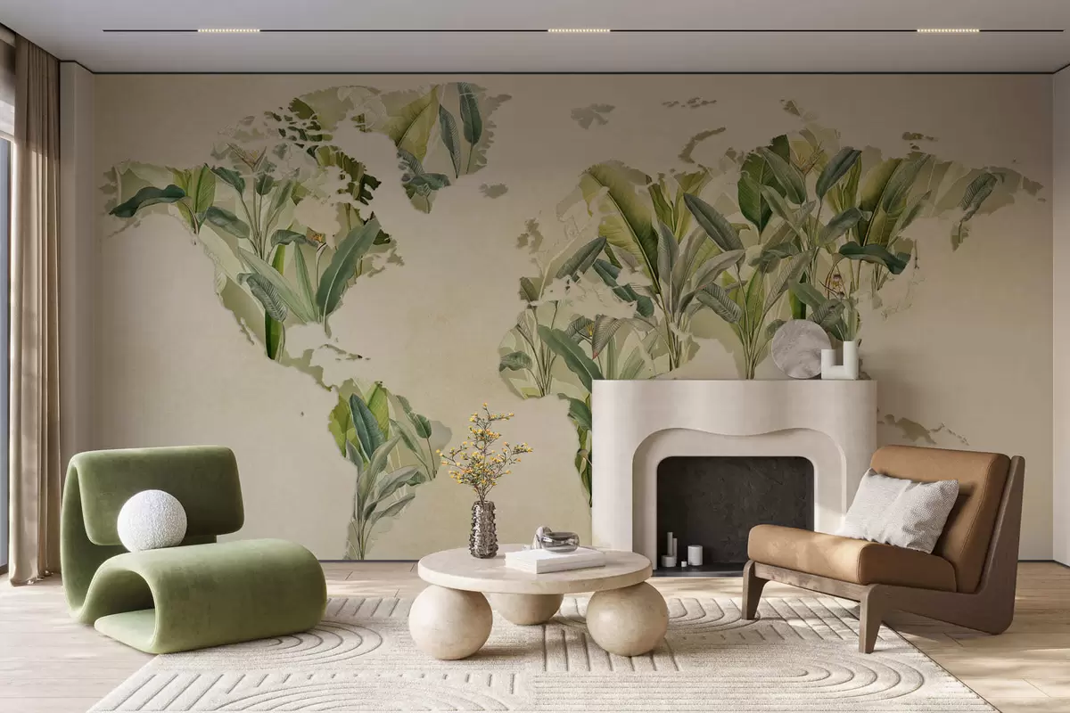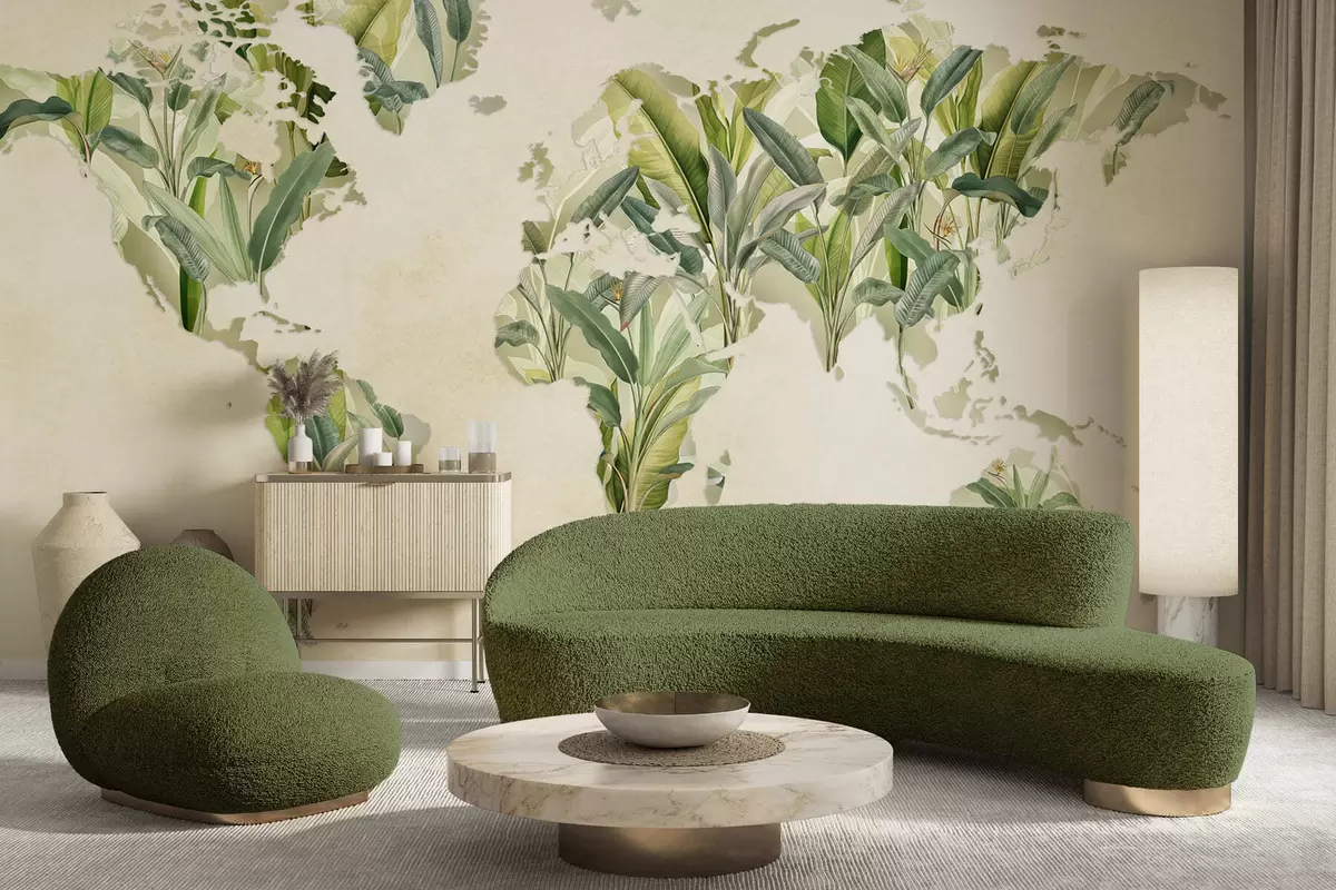 Фотошпалери Зелена карта світу, виготовлена з бананового листя c00007