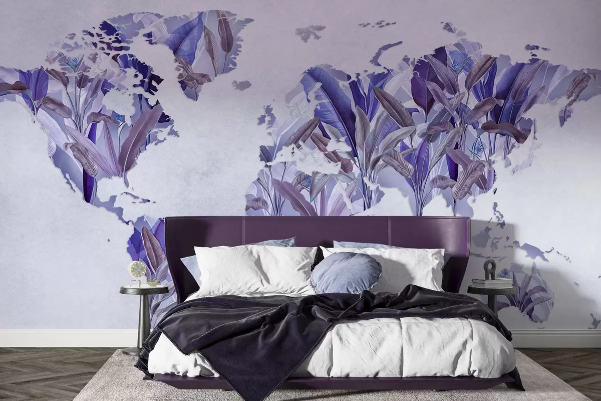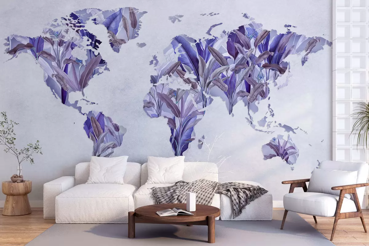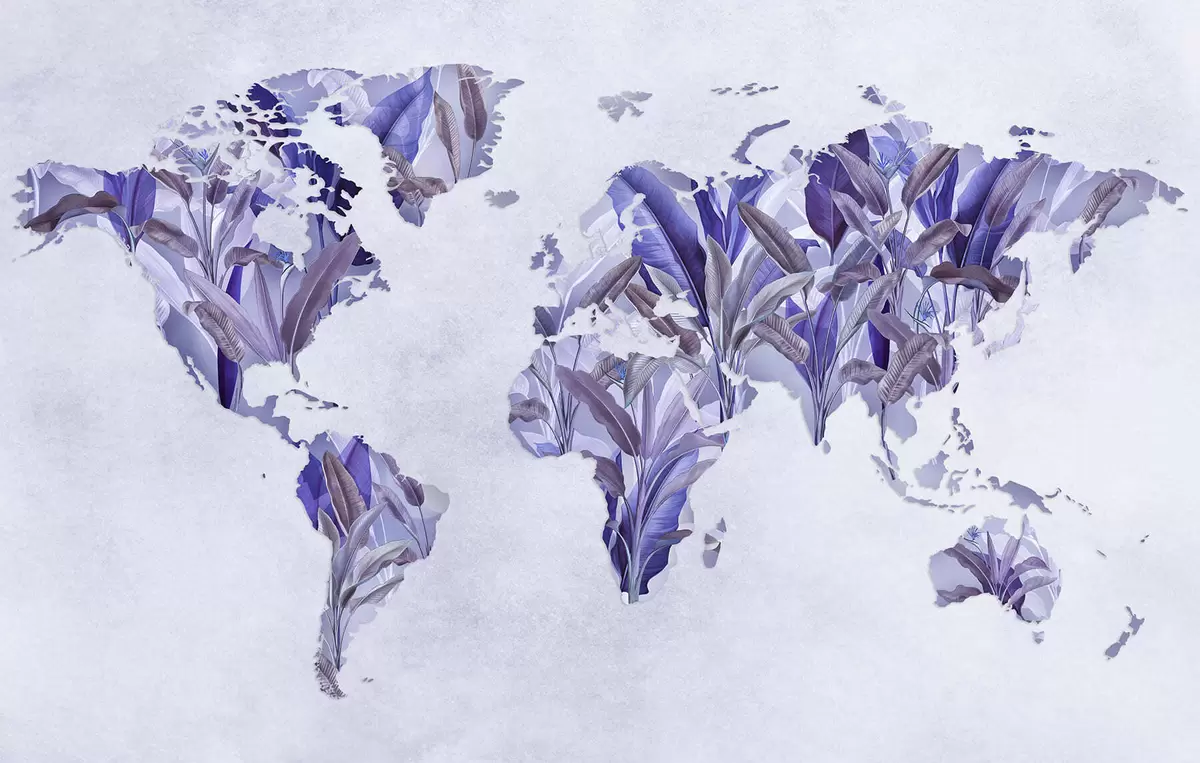 Фотошпалери Фіолетова карта світу, виготовлена з бананового листя c00007v1
