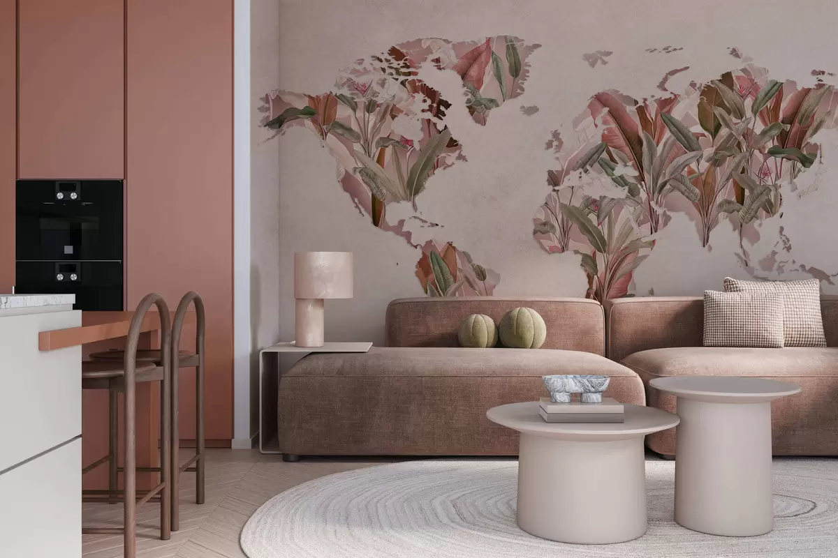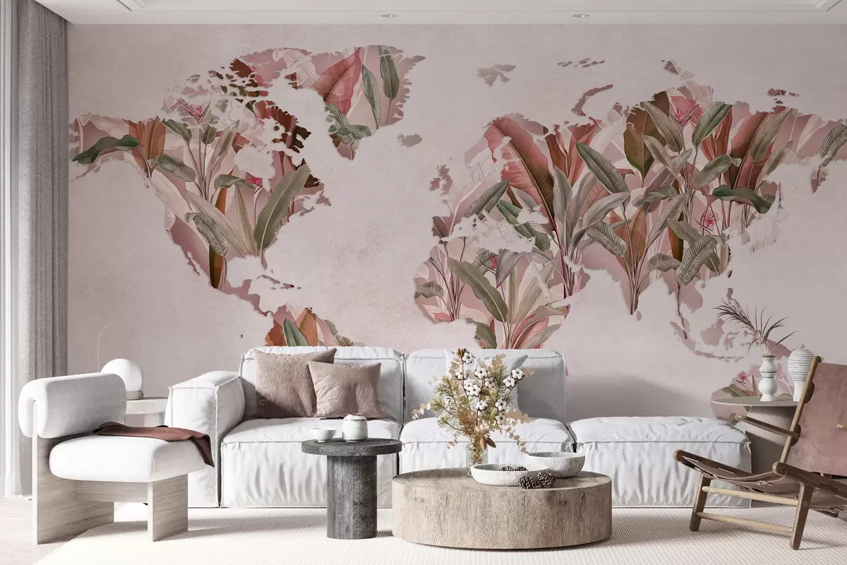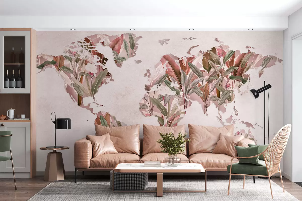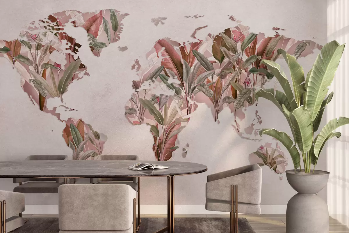 Фотошпалери Рожева карта світу, виготовлена з бананового листя c00007v2