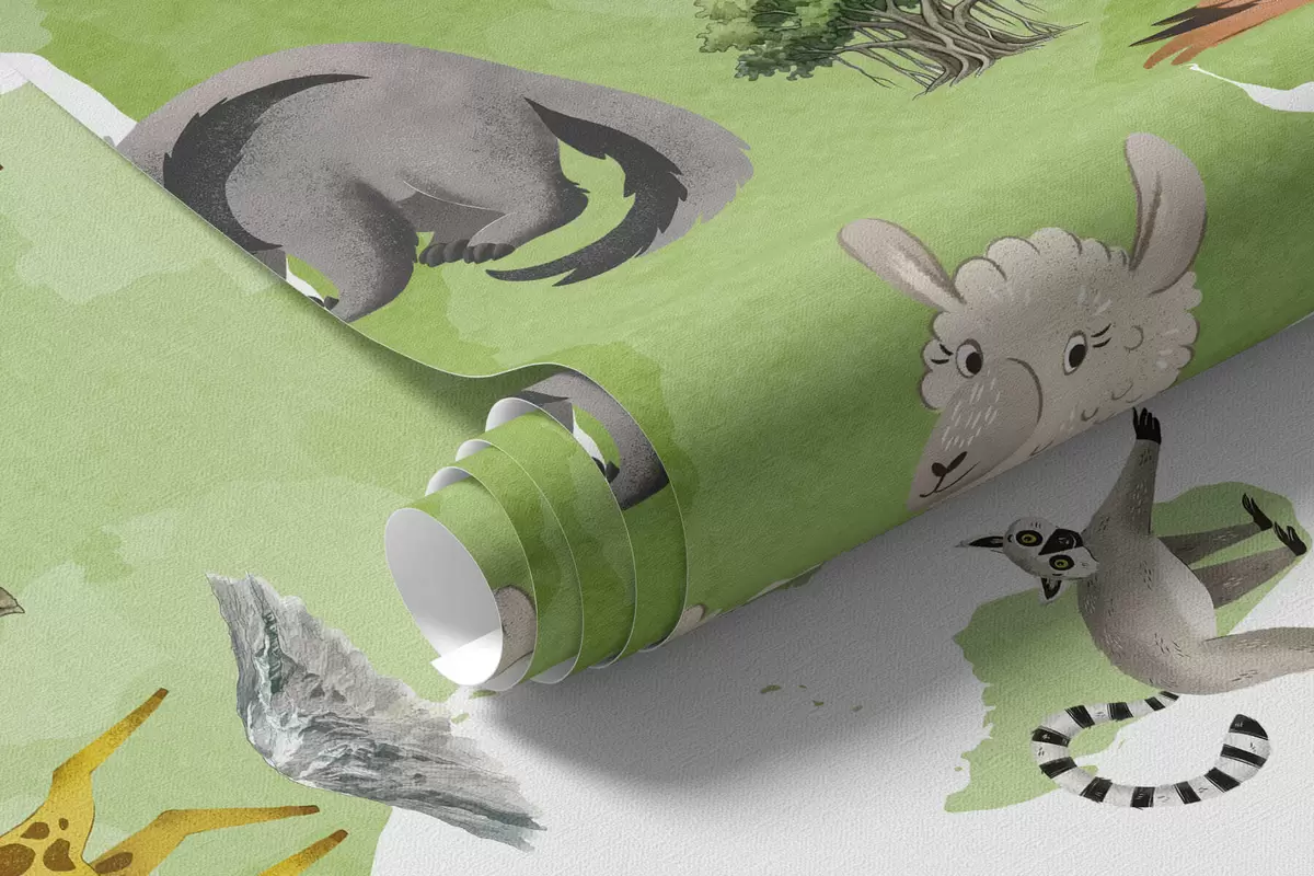 Фотошпалери Карта «Зелена» у стилі акварелі із зображеннями тварин, рослин та архітектурних споруд. Написи українською мовою c00009ukv2