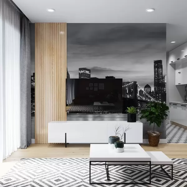 Фотошпалери Міський пейзаж у сутінках у монохромі u55510