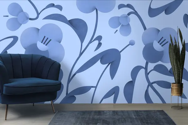 Фотошпалери Ботанічний принт із декоративними квітами блакитного кольору u99196v8