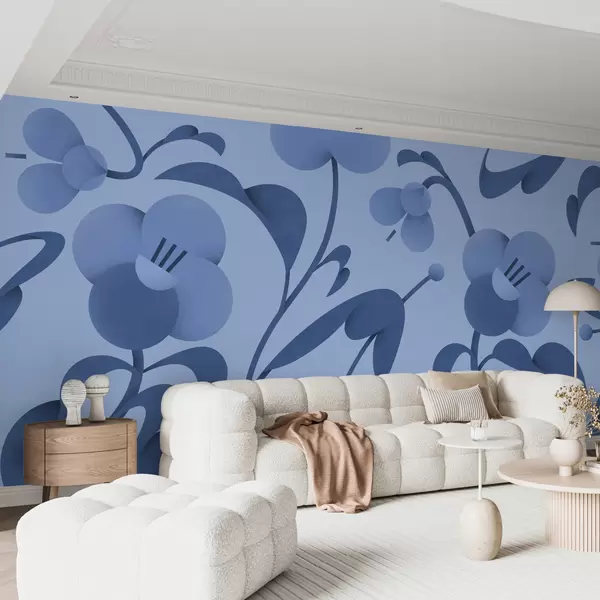 Фотошпалери Ботанічний принт із декоративними квітами блакитного кольору u99196v8