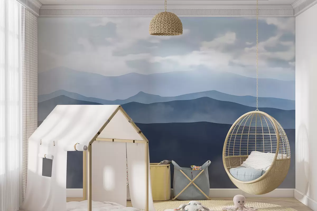 Фотошпалери Туманний мінімалістичний гірський краєвид з пагорбами та хмарним небом w01317