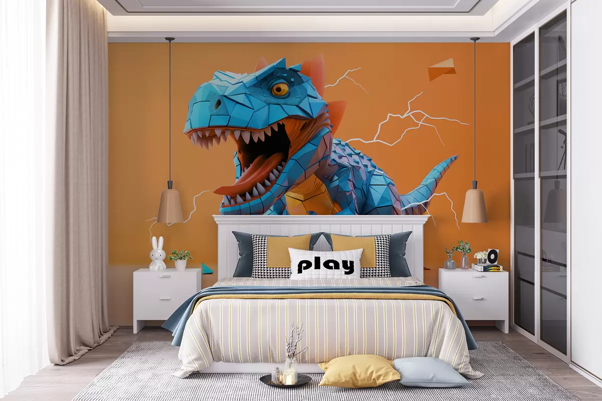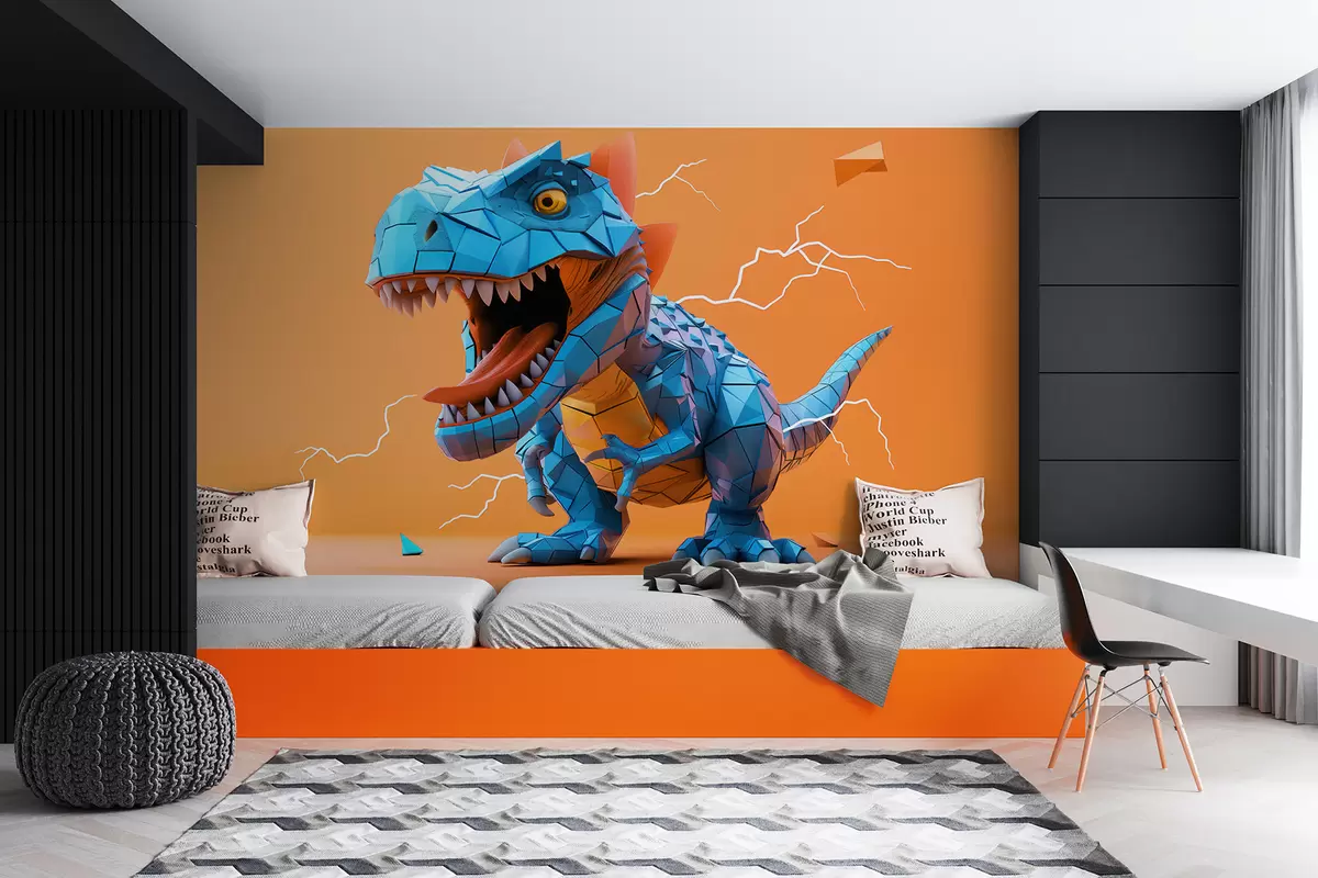 Фотошпалери Лютий динозавр з ударом блискавки в жовто-блакитних тонах w01333v1