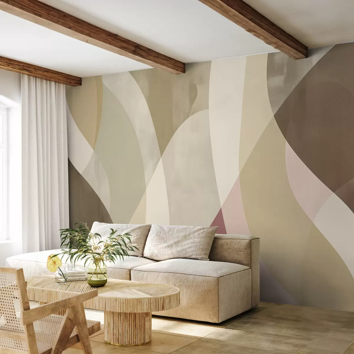 Фотошпалери М’які вигини в приглушених тонах з плавними лініями та бежевими градієнтами, мінімалістичний і сучасний w01334v1