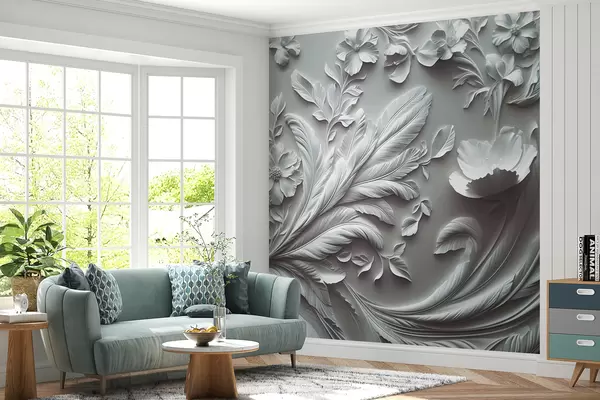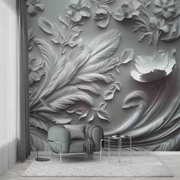 Фотошпалери Вишукані підняті квіти і листя в сірих тонах w01356v2