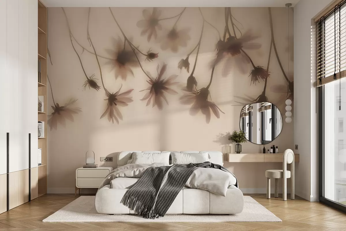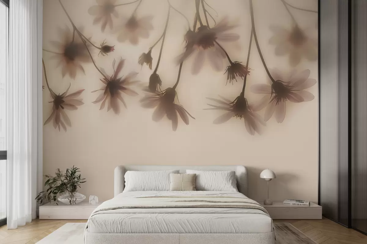 Фотошпалери Ніжні квіти в тумані висять зверху в рожевих тонах w01469