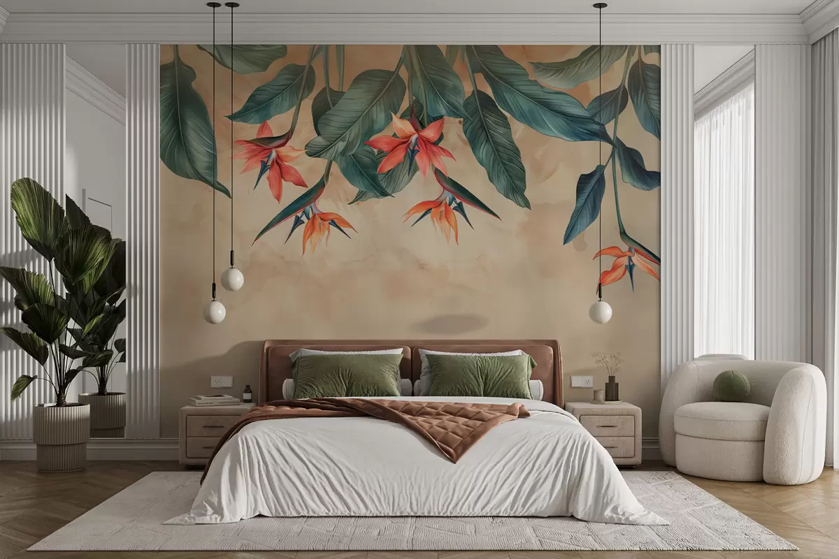 Фотошпалери Тропічний розквіт на бежевому фоні аквареллю w01485