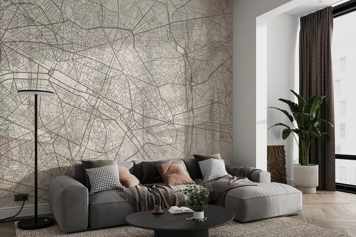 Фотошпалери Карта Парижа, лінійний малюнок, архітектура, Франція, бежеві кольори w01697