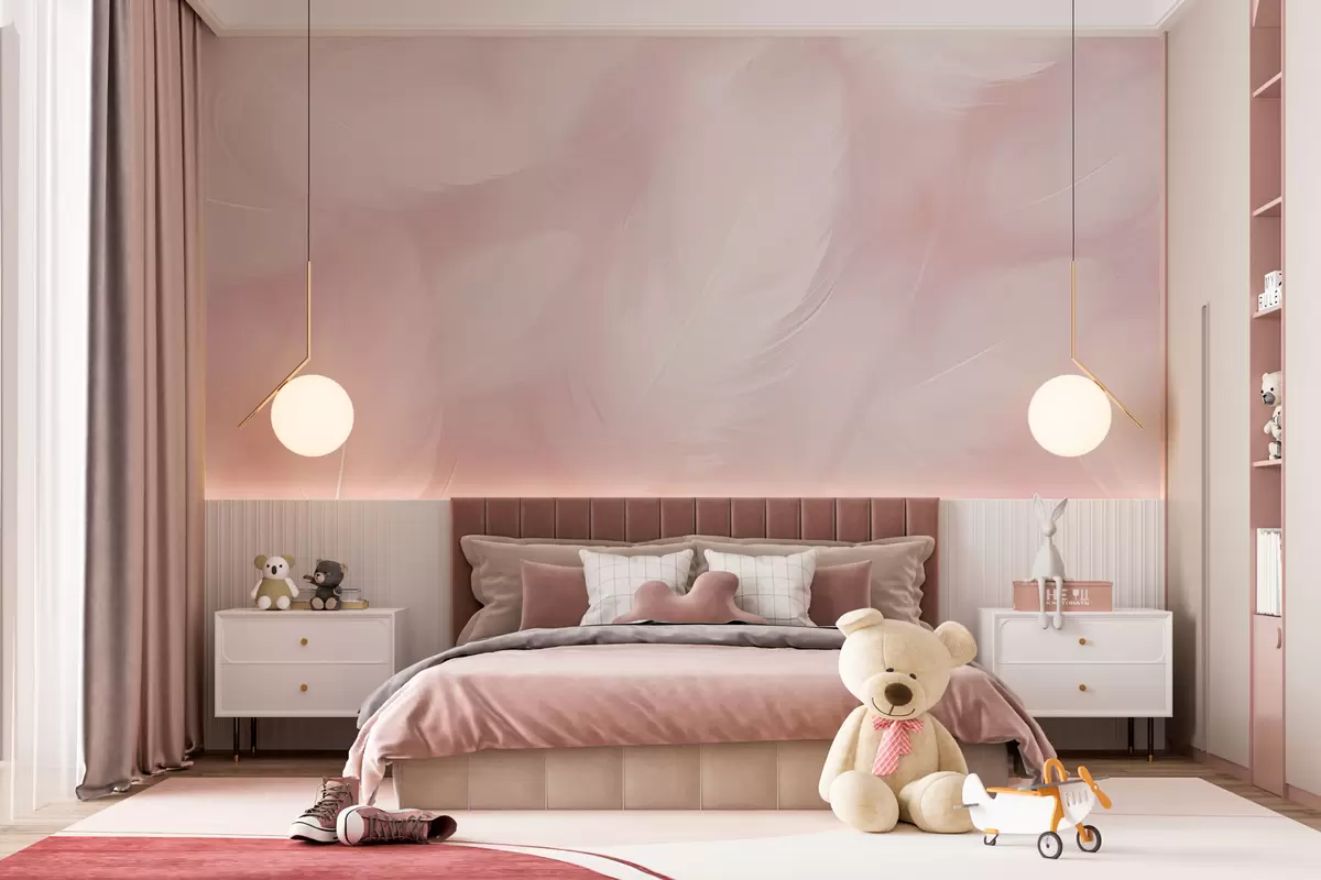 Фотошпалери Миле пір'ячко на рожевому тлі w01703