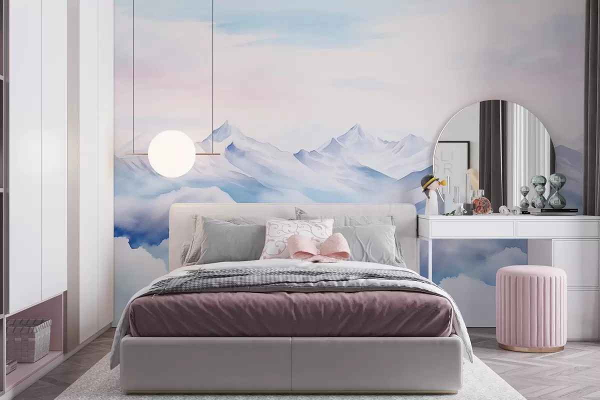 Фотошпалери Гірський пейзаж, акварель, м'які фіолетові кольори w01787