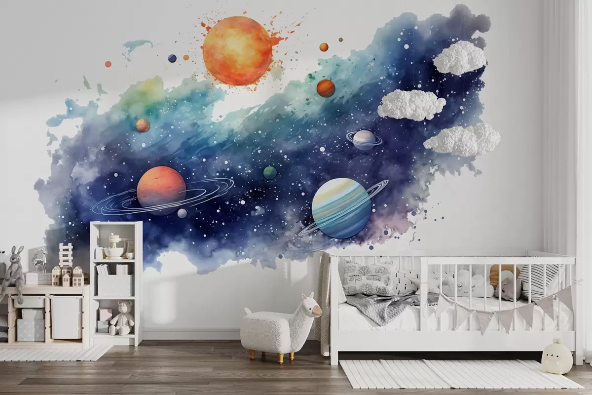 Фотошпалери Акварель космос, планети, сонце, зірки w01803