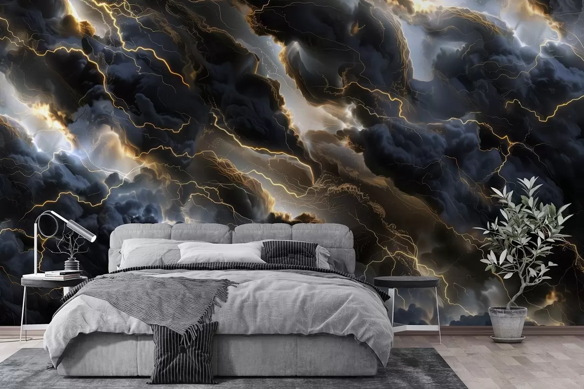 Шпалери Чорні хмари з блискавками, схожі на мармур w01936