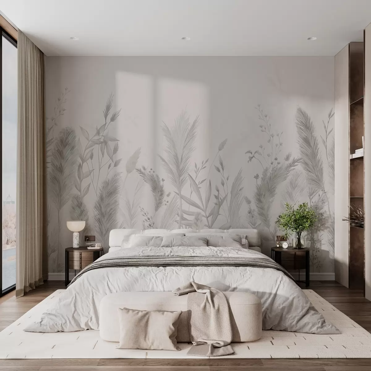 Фотошпалери Високі польові трави та квіти в нейтральних кольорах w02004