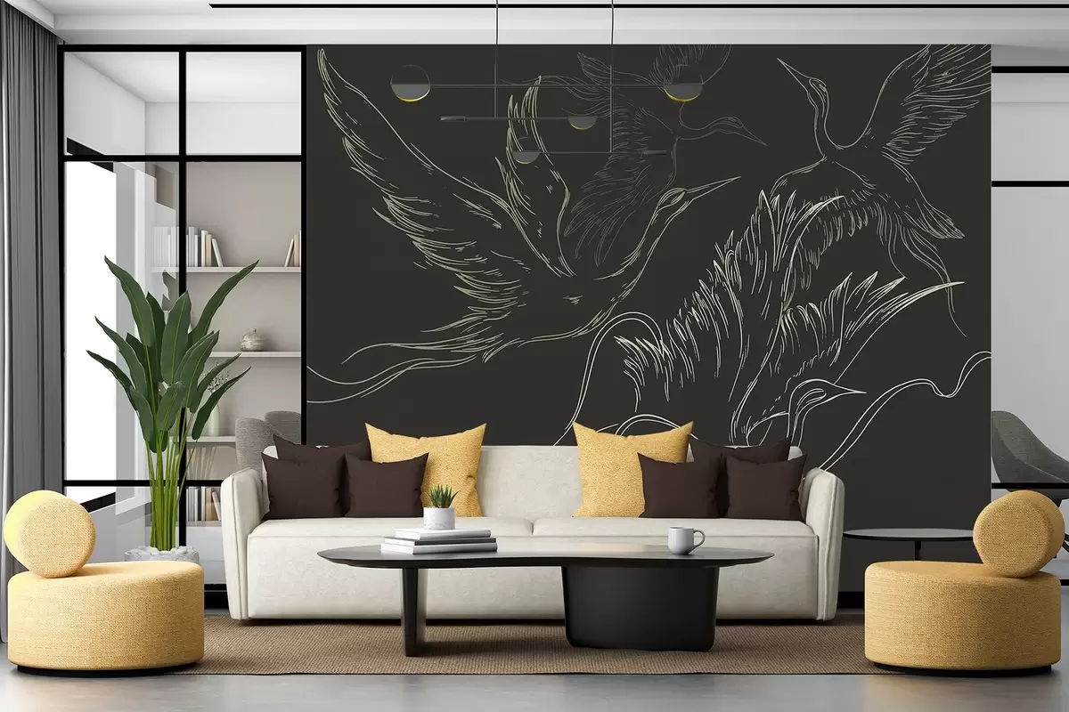 Фотошпалери Політ птахів, мінімалізм, лайн-арт, природа, темне тло w02061v3