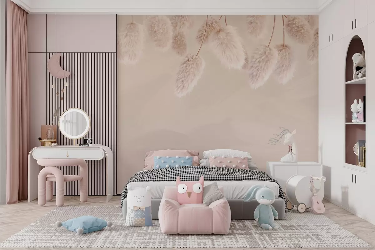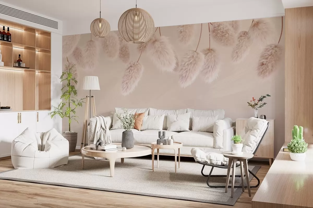 Фотошпалери Ніжні хмаринки лагурусу на тлі ніжно-рожевих мазків w02071