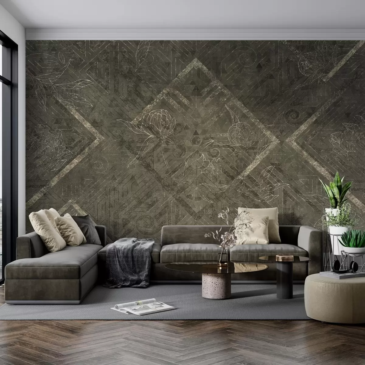 Фотошпалери Гранжева текстура з квітковими візерунками в жовтому кольорі w02079