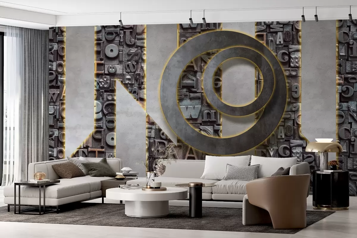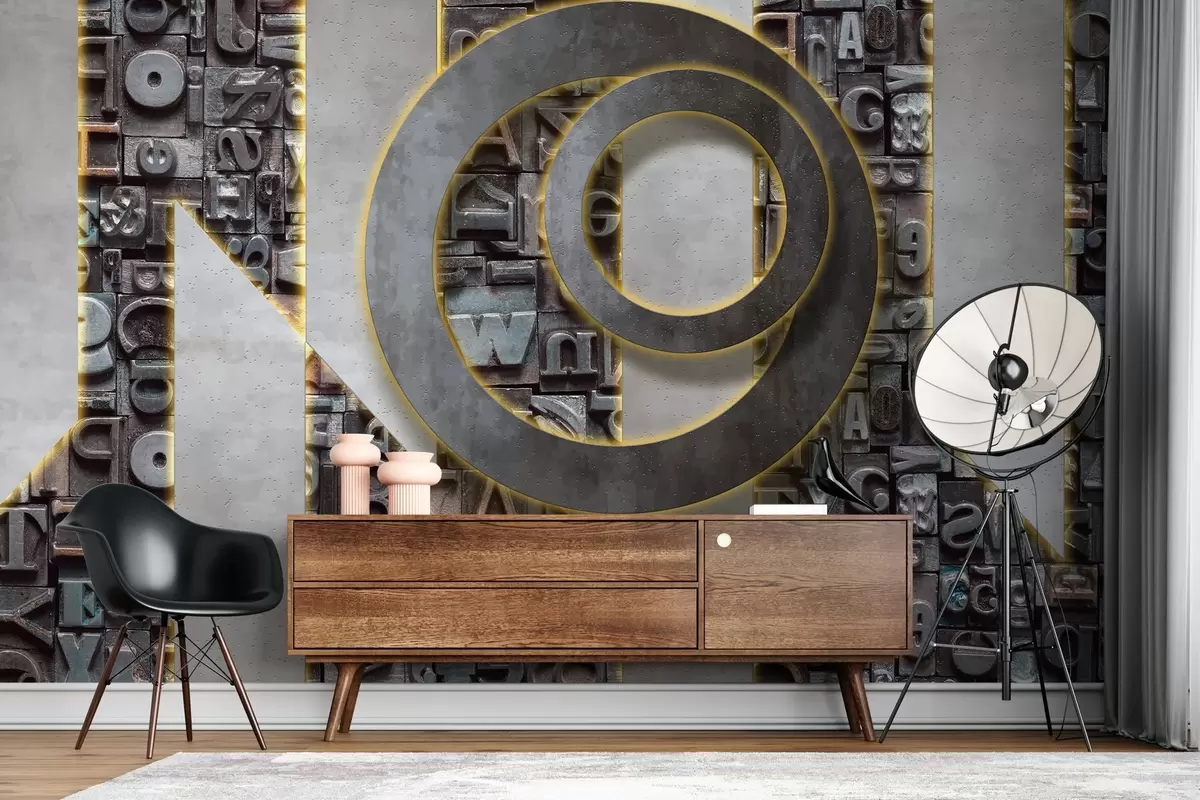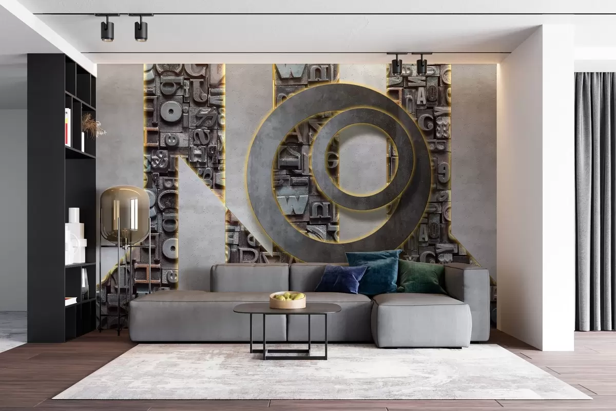 Фотошпалери Сучасні шпалери в стилі лофт з імітацією об'ємних літер, бетону та підсвічуванням w02125