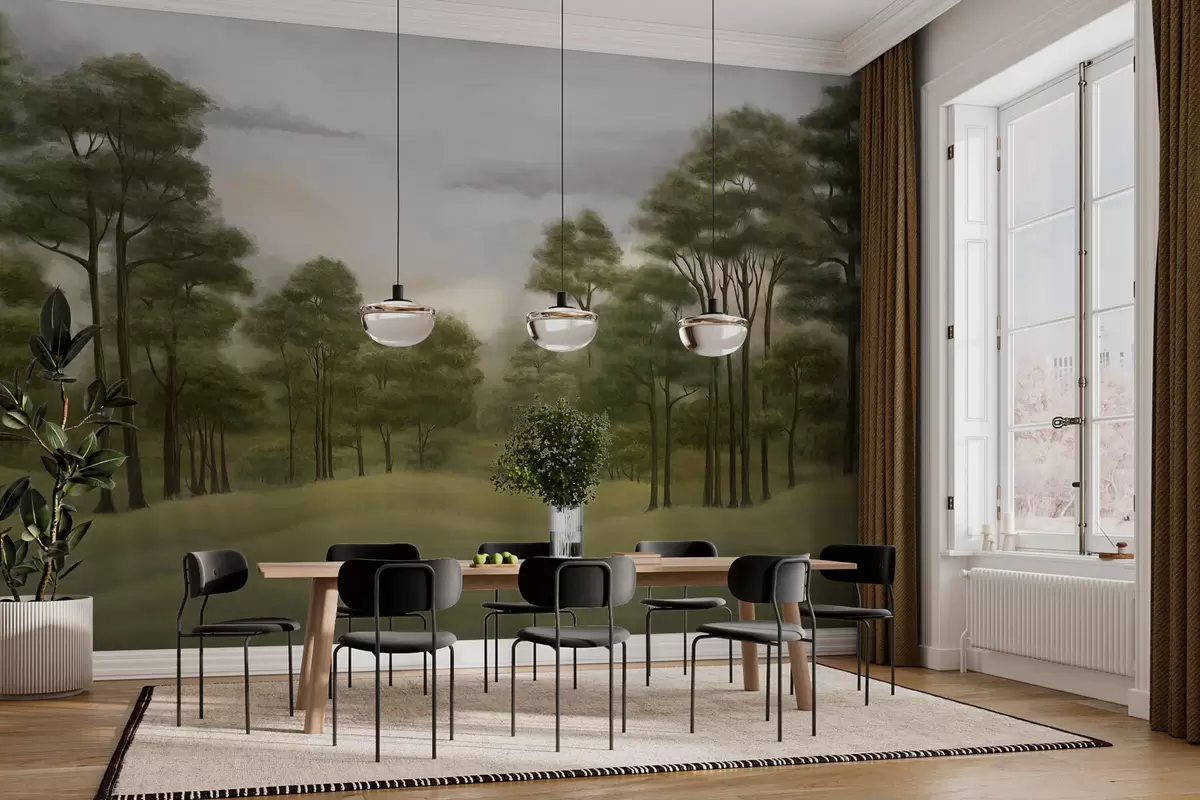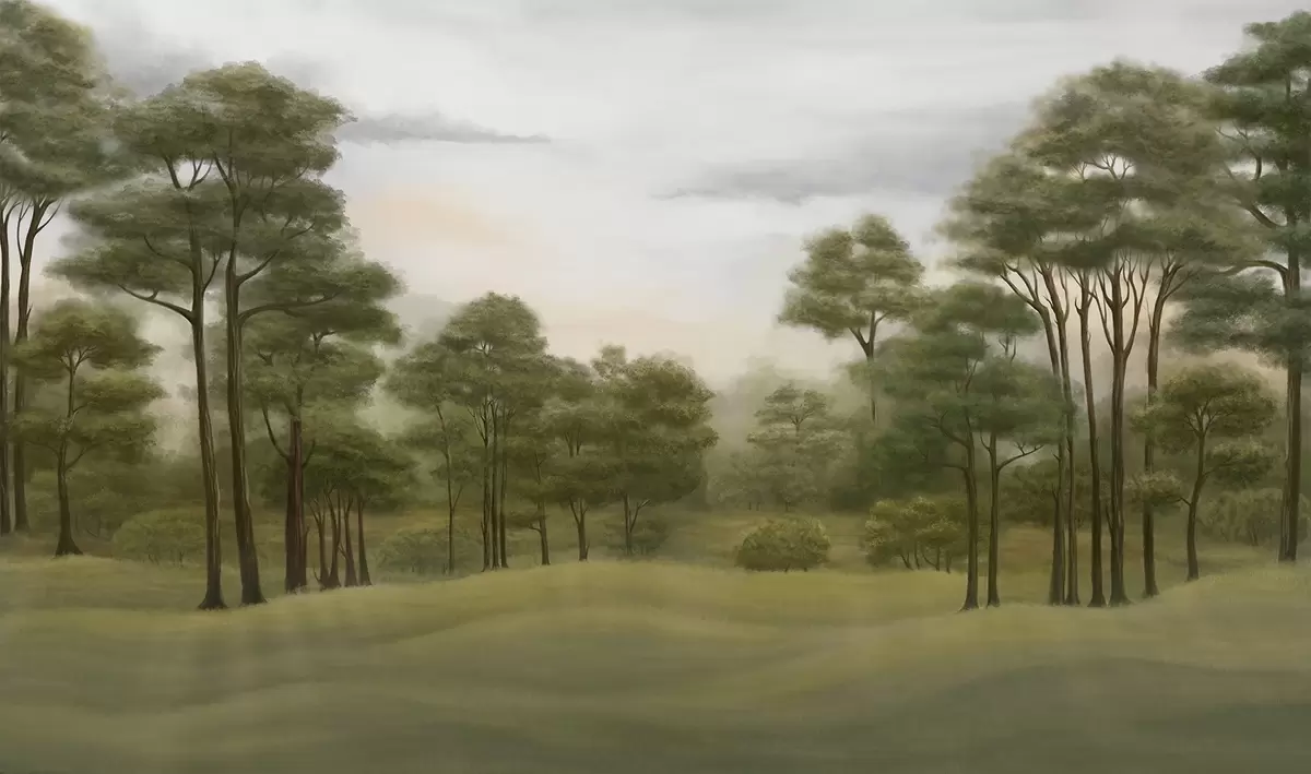 Фотошпалери Спокійний лісовий пейзаж у ніжних відтінках w02193