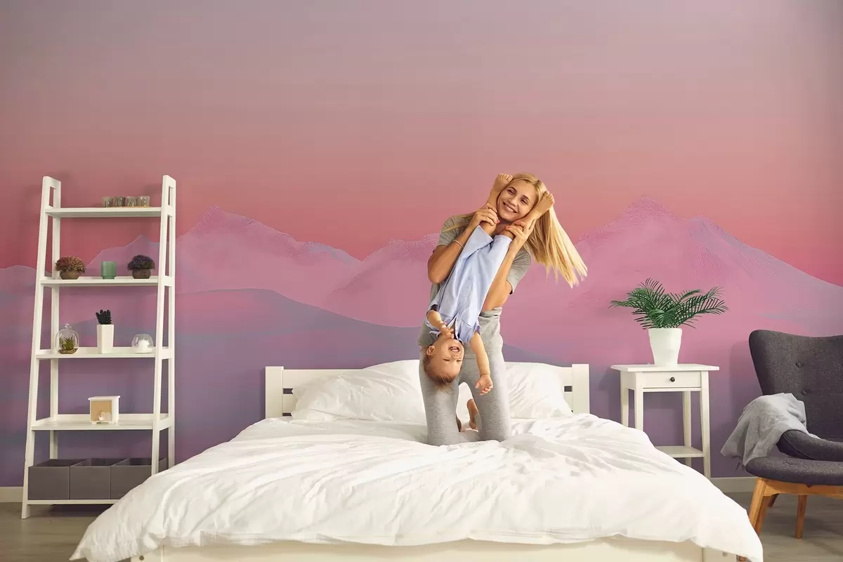 Фотошпалери Ніжно-малиновий захід сонця на тлі гір і неба w02234
