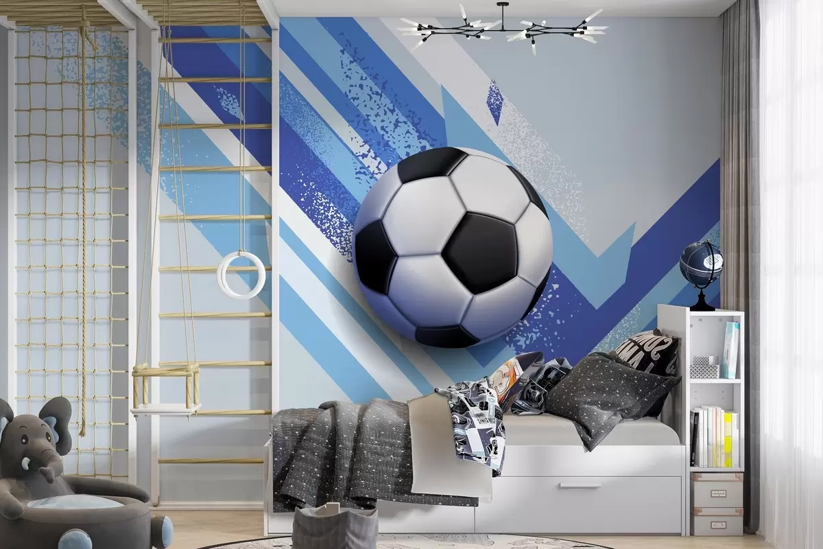 Фотошпалери футбольний м'яч на динамічному абстрактному тлі в синіх кольорах w02347