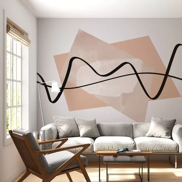 Фотошпалери Чорні лінії та бежеві форми абстрактні w02377
