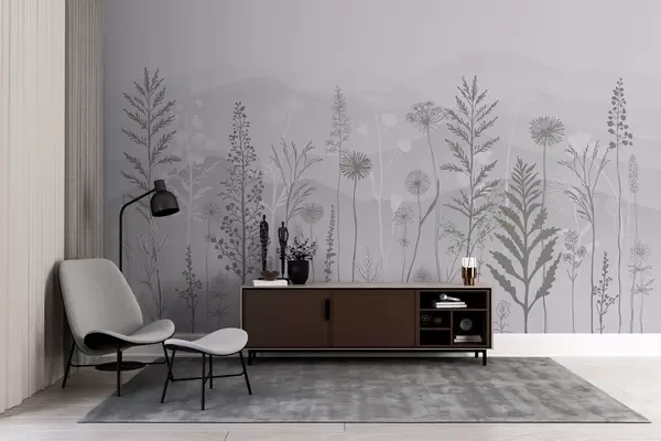 Фотошпалери шпалери в еко-стилі, польові квіти в сірих тонах w02443