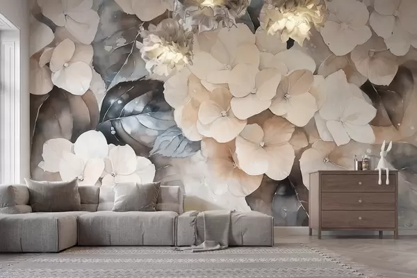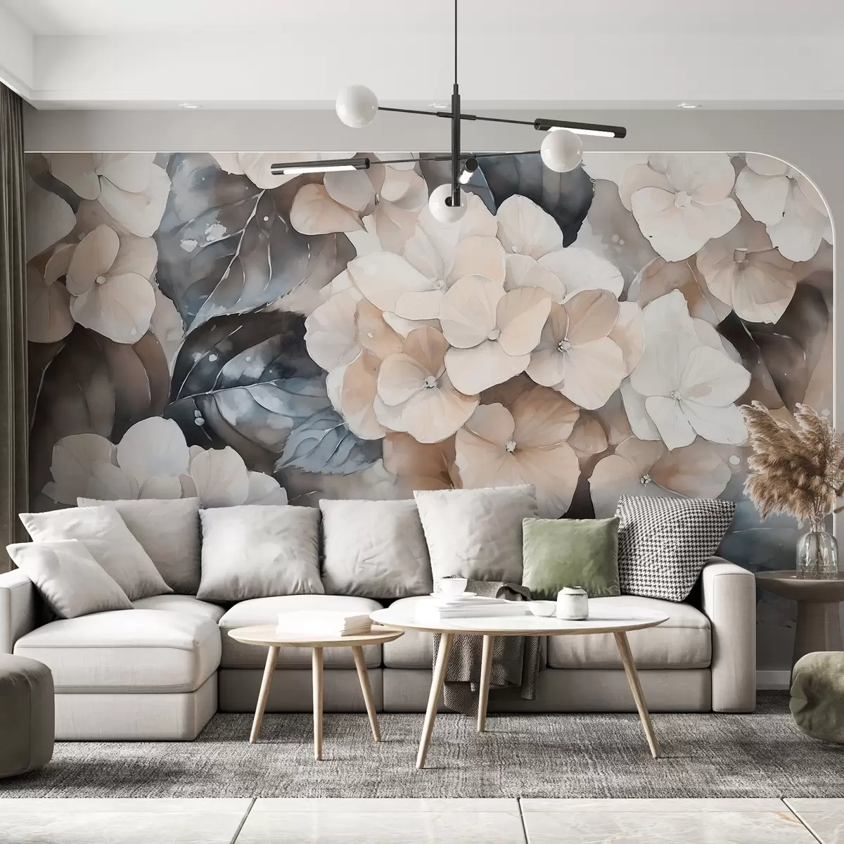 Фотошпалери Квіти гортензії, акварельний малюнок, бежеві кольори, квітковий w02488