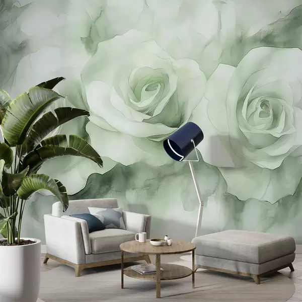 Фотошпалери Красиві троянди, акварельний стиль, зелені кольори, богема w02492v2
