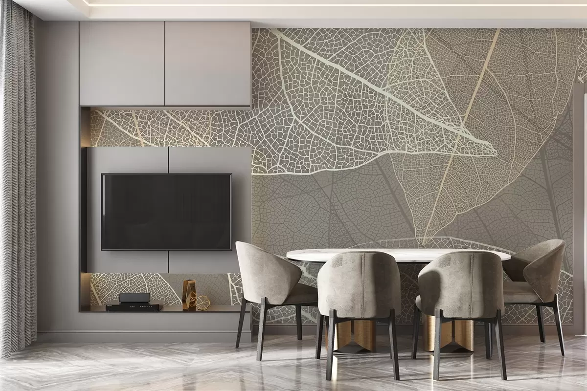 Фотошпалери крупним планом листя з прожилками в теплих сірих тонах w02520v2