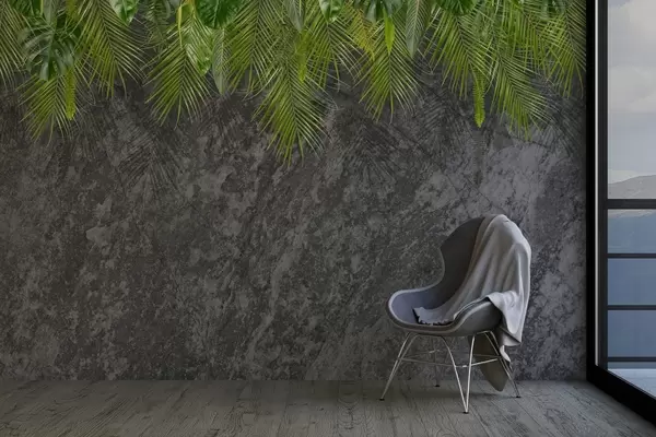 Фотошпалери тропічне листя на тлі імітації каменю w02547