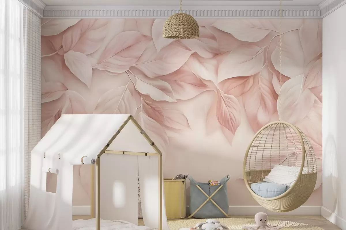 Фотошпалери ніжне рожеве листя для спальні дівчинки w02549