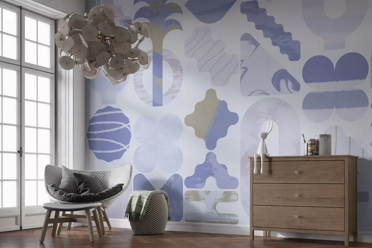 Фотошпалери різноманітні цікаві форми, сучасна геометрія в синіх тонах w02550v1