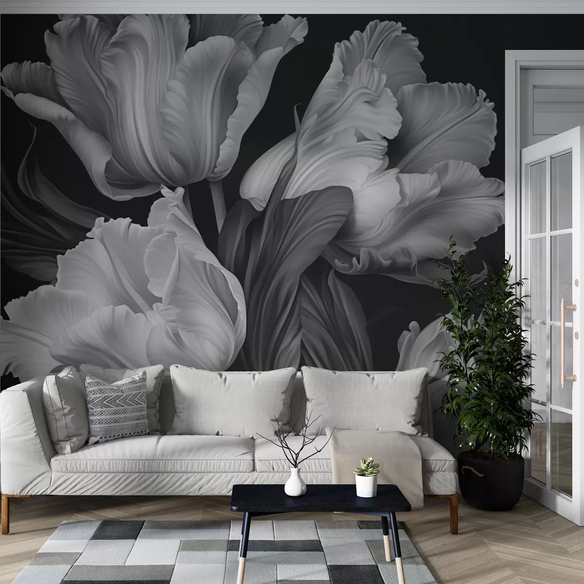 Фотошпалери Чорно-білі тюльпани у фотореалістичному стилі w02557