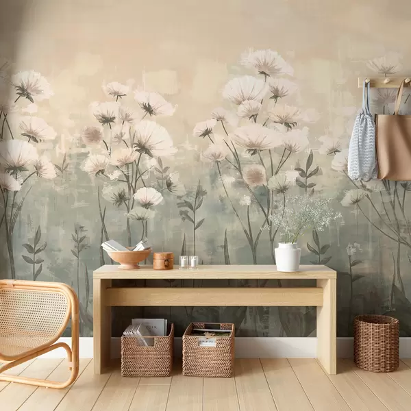 Фотошпалери Ніжні польові квіти з ефектом мазка в жовто-бежевих тонах w02629v1